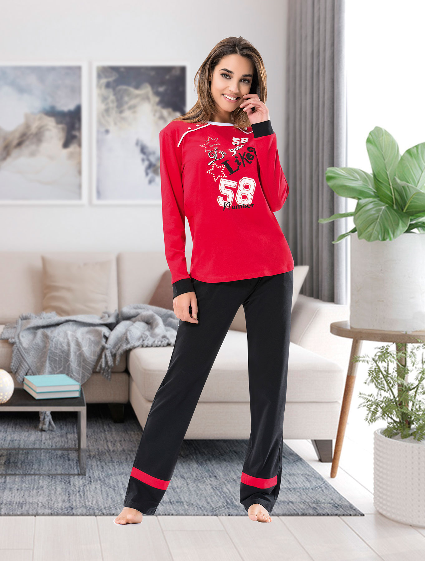 Derya Kurşun Yıldız Baskılı Uzun Kol Kadın Pijama Takım 1103