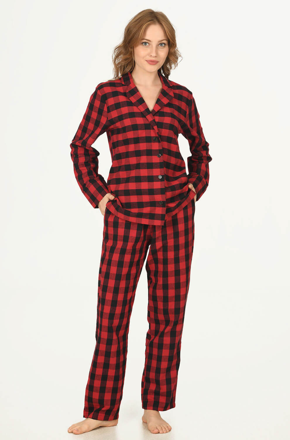 Yeni sezon kırmızı siyah ekose desenli pijama takım modelidir.