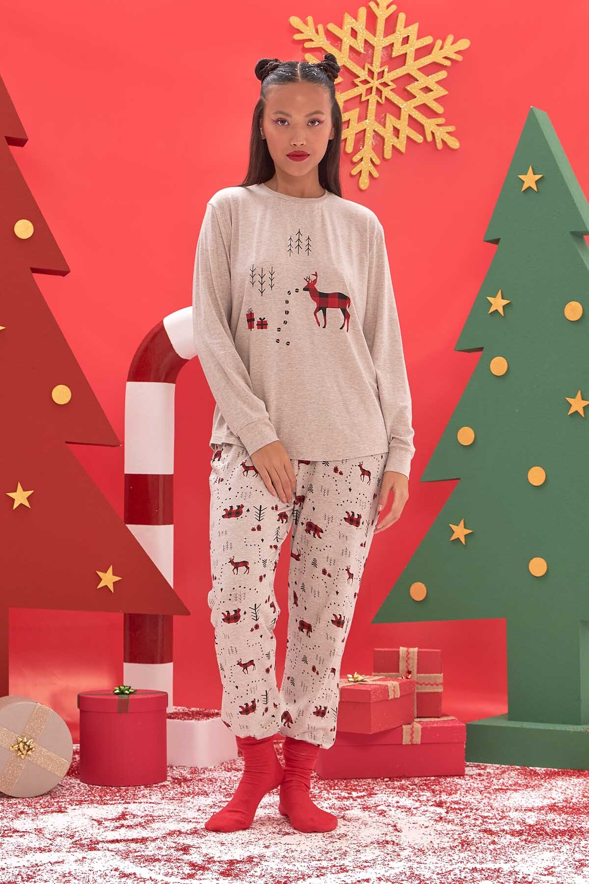 Yeni sezon bisiklet yaka ve uzun kollu geyik baskılı kadın pijama takım modelidir.
