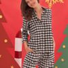 50% Pamuk – 50% Polyester karışımı kumaştan üretilmiş yeni sezon pötikare desenli gömlekli pijama takım modelidir.