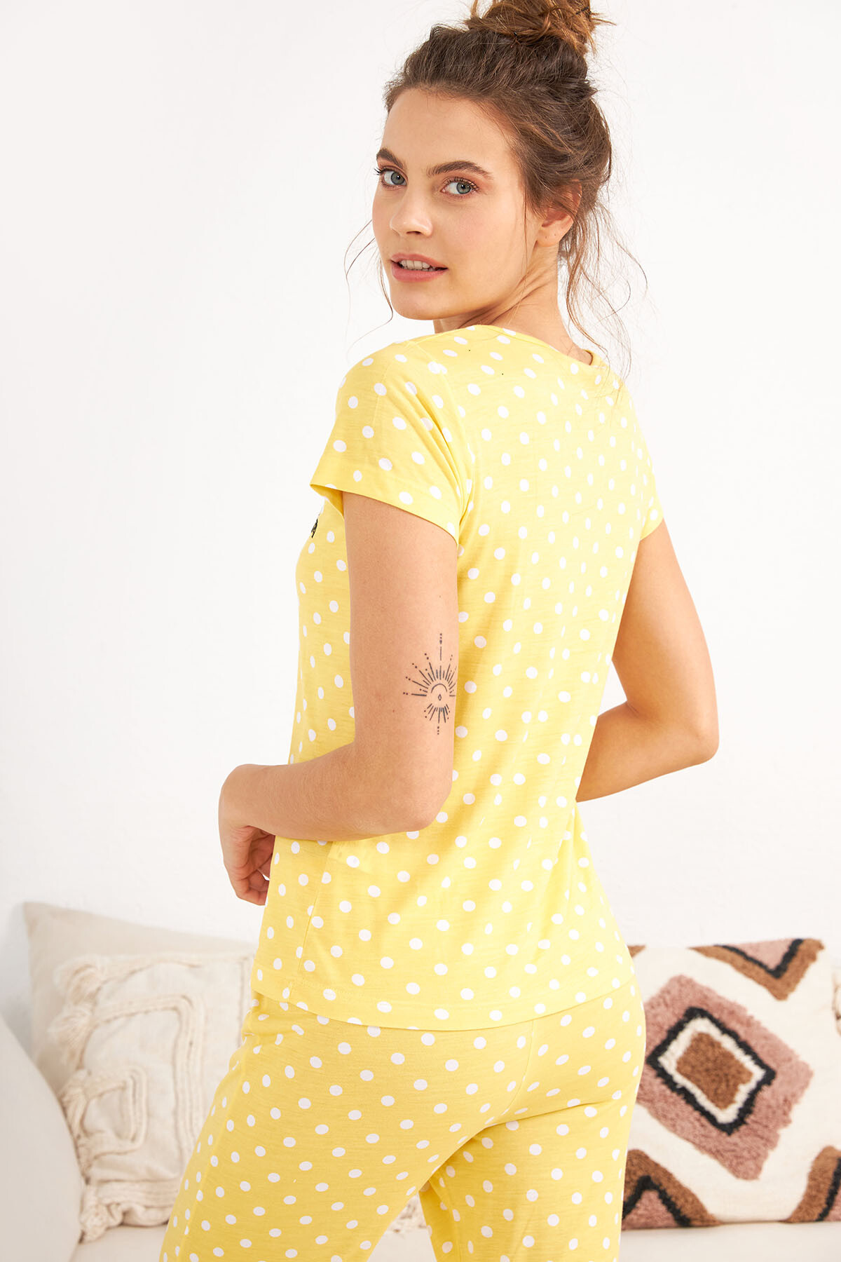 Yeni sezon puantiyeli ve baskılı çok şık viskon kadın pijama takımı modelidir.