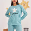 Yeni sezon çok şık yıldız baskılı, bisiklet yaka ve uzun kollu kadın pijama takımı modelidir.